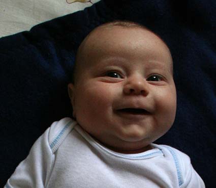 Antals Hände gehen nun an den Mund & werden belutscht. Und er lacht - und sowas von süß !