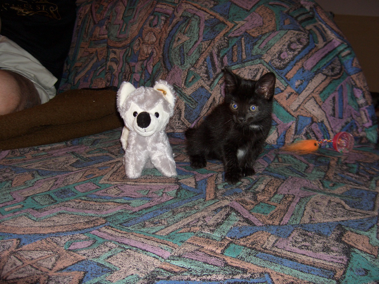 Meine Mieze ist schwarz mit ein bißchen weiß am Bauch und heißt Lucy.