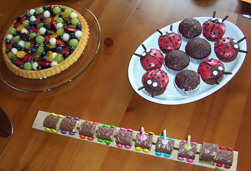 Grübelchen, was für ein süßes Geburtstagskind mit Moni und Fahrradkorb. :knuddel: Und die Muffins als Maikaifer haben es mir auch ganz besonders angetan!!! Topfschlagen hat schon geklappt?