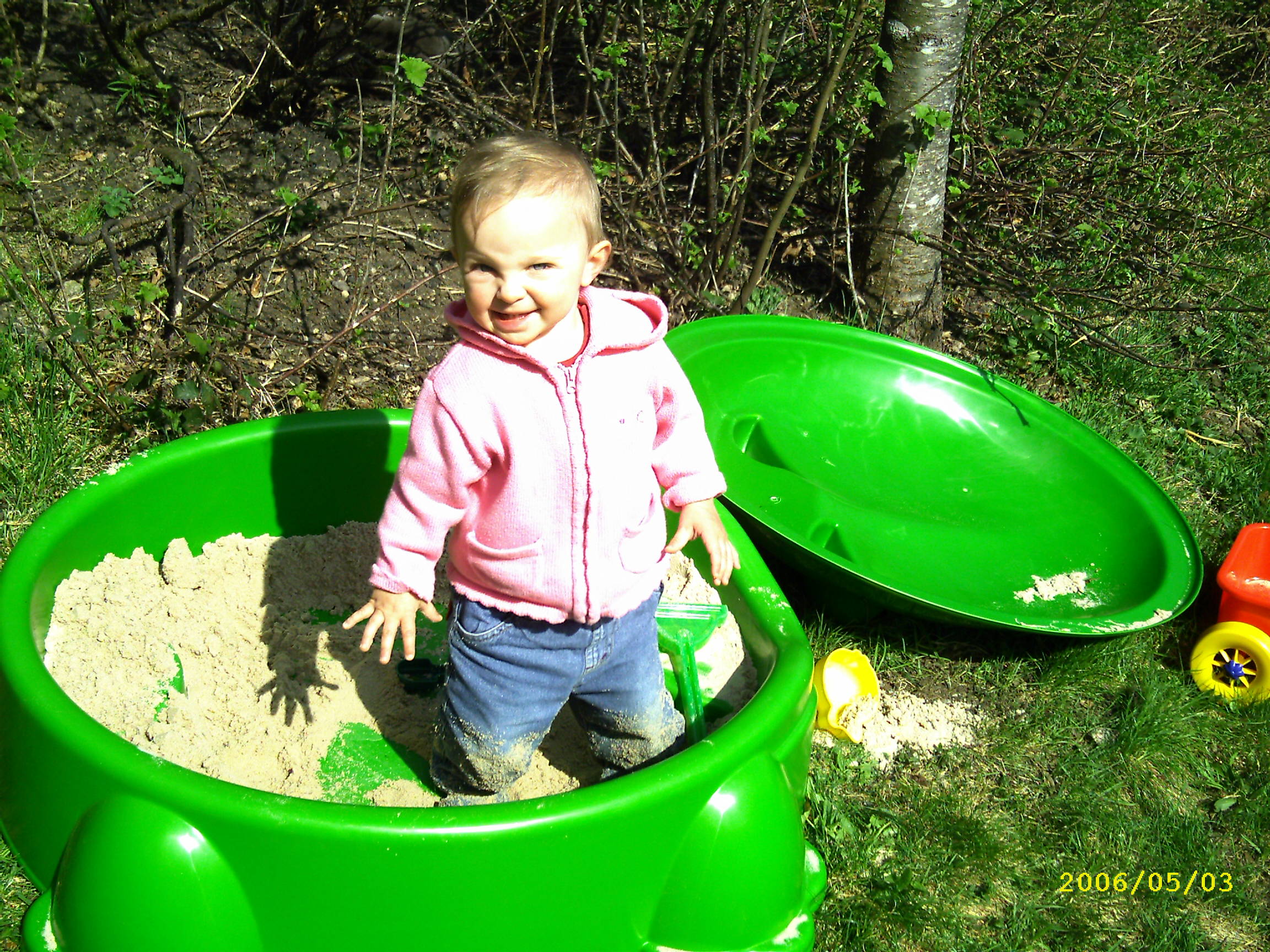 Barbara: Luisa ist echt ne große geworden! Ich fin die Plastiksandkästen auch schön. Meine Schwieris haben unten so einen. Schwiemu meinte das sie im Sommer ja in die eine Hälfte Wasser lassen können...ich vermute nur das Linus den Sand in die Wasserhälte schaufelt und es nur noch Matsche ist