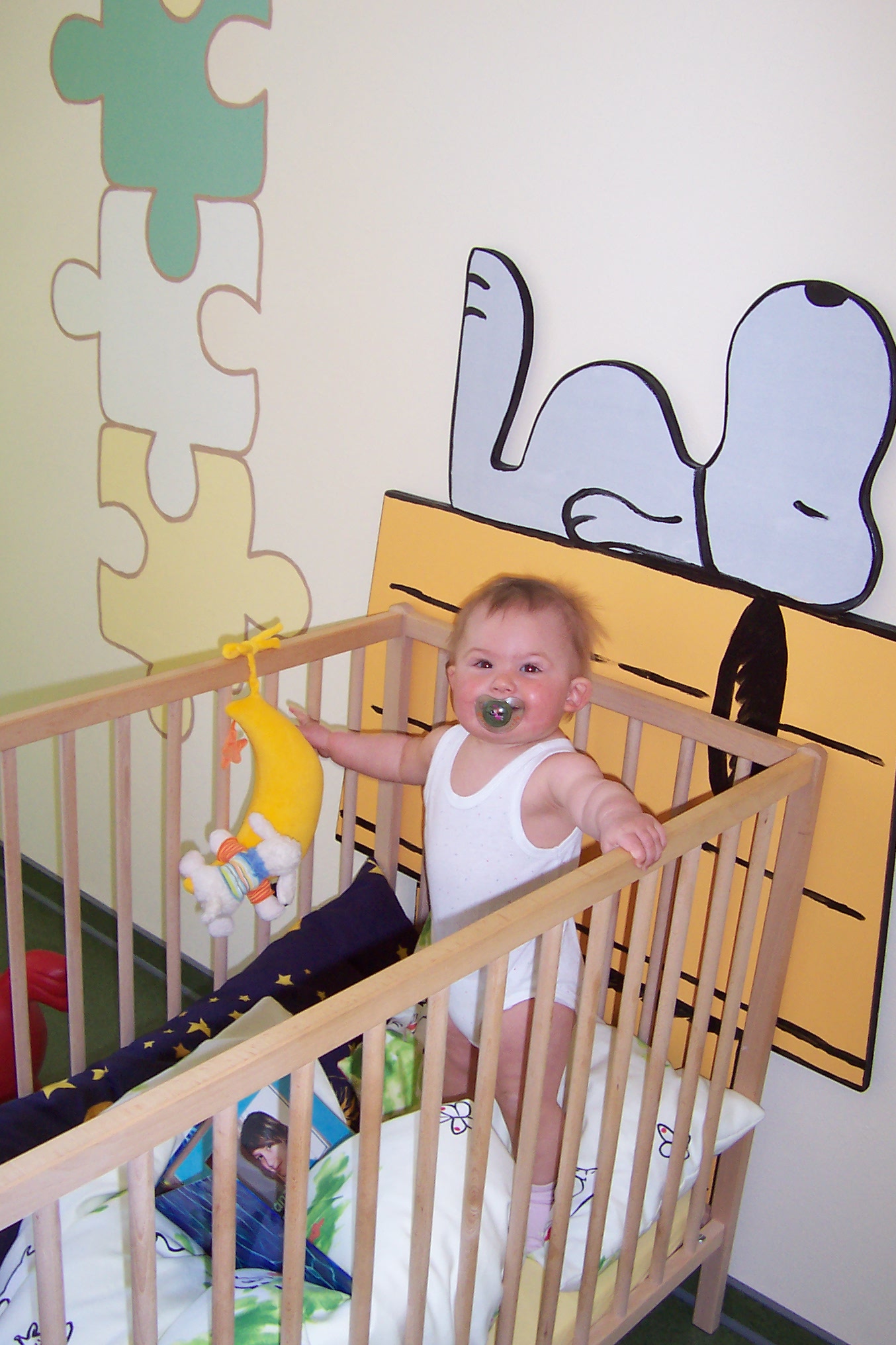Dann gibt es noch was neues, Jack ist huete durchs halbe Wohnzimmer zur Tür raus gelaufen und erst als er im flur stand, hat er gemerkt, dass er gelaufen ist und saß gleich wieder auf dem Po. Ich denke bald läuft er mahr, als er krabbelt. Und es ist so niedlich wie er läuft.