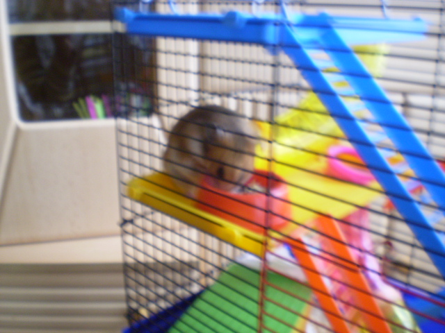 Allerdings ist das Vieh echt ein Ferkel. Normale Hamster haben ja so ihre Pinkelecken. Aber nicht Fiona. Die bleibt beim Rennen im Rad einfach stehen, pinkelt ne Runde, rennt weiter. Und sonst macht sie ins Haus bzw. dahinter.... Warum hab ich dem Vieh kein Plastikhaus gekauft?!