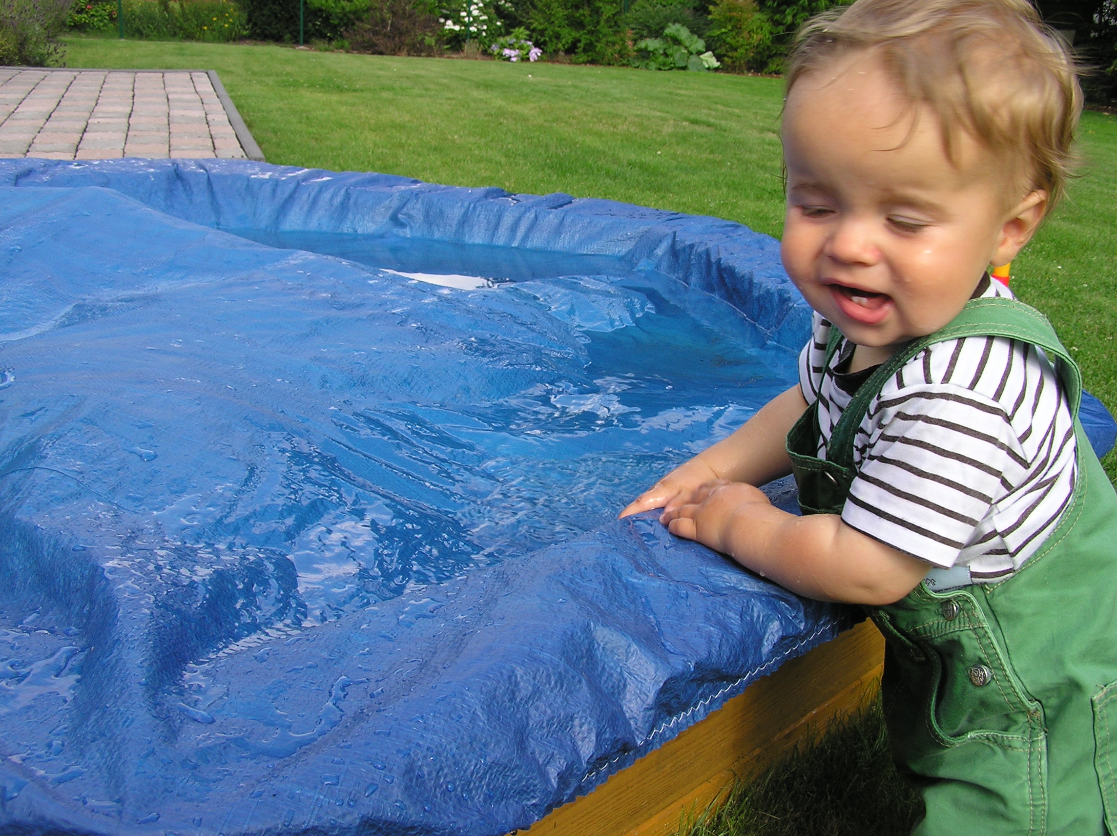 Lukas hat mal kurzer Hand den zugedeckten Sandkasten als Minipool umgewandelt.