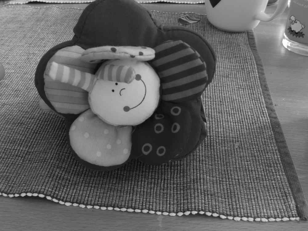 doof das kommt hier nur shcwarz weiss also nr. 1 ist ein boot zum ziehen mit figur drinnen und segel und das zweite ist ein greifling mit knistern und rasslen beides von haba und dann eben noch die buchstaben VIVIEN für die tür mit tieren.