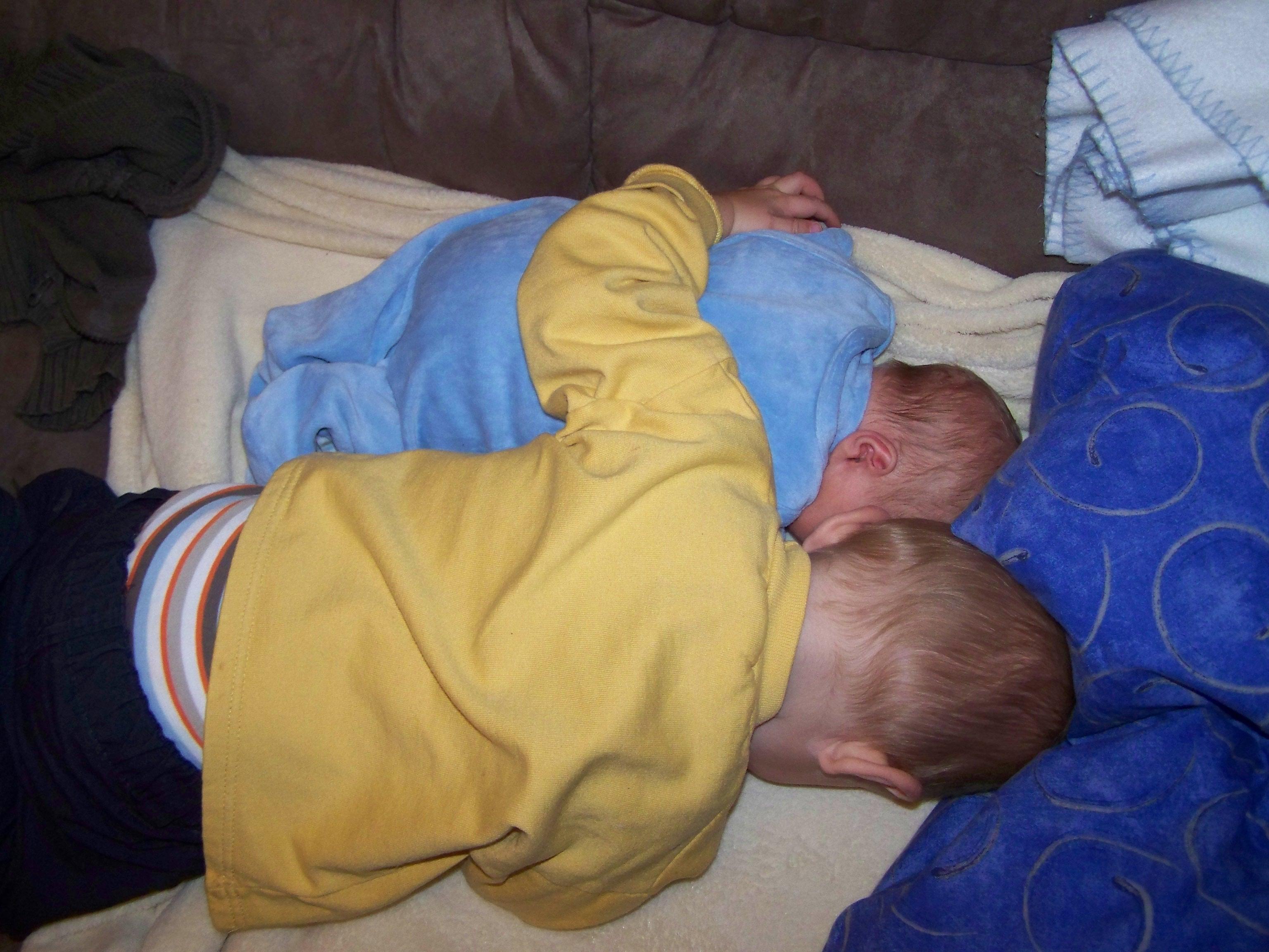 Ich stell mal 2 Bilder ein: Eines von Aaron und eines von unseren beiden zusammen. Leander geht so süß mit Aaron um. Ist echt super!