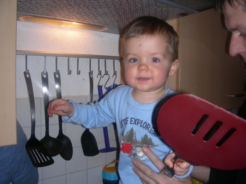 Sag mal hast du keine Angst, dass die Tür vom Geschirrspüler abbricht, wenn Luca da drauf klettert?