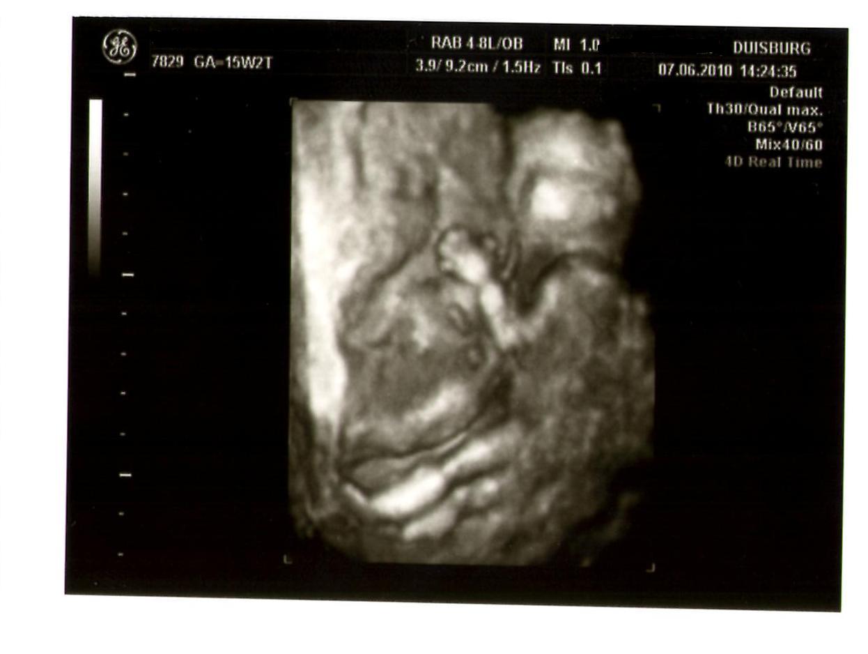 Aber jetzt schon eine kleine Zicke, wollte sich gestern beim US nicht so wirklich zeigen, deswegen zeigt das US Bild nur ein Ärmchen und die Beinchen, den Kopf und den Körper hat die so doll gegen die Gebärmutter gedrückt das man auf den 3D Bild nicht wirklich was erkennen kann.Ich stell das nachher mal rein.