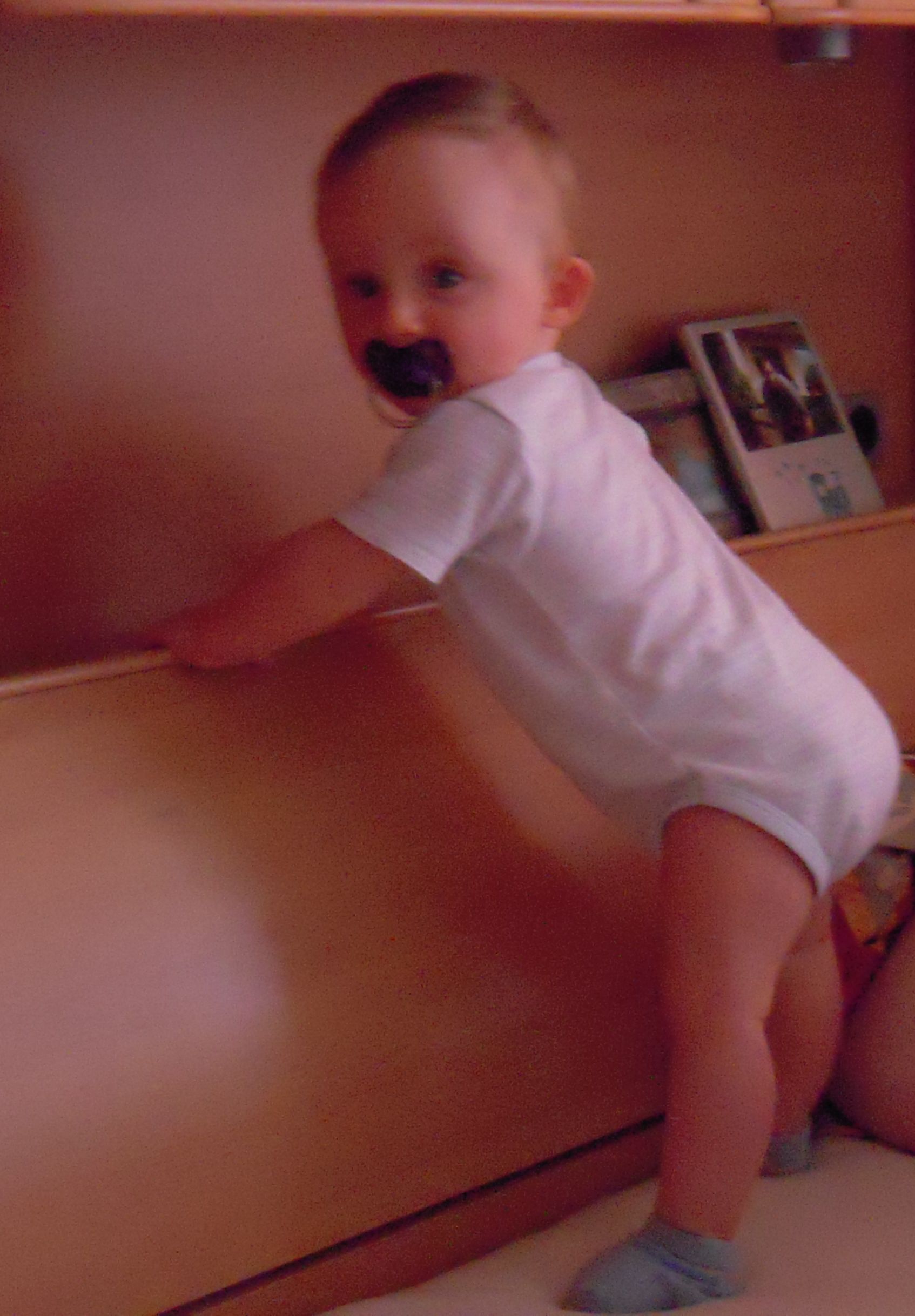 Anbei mal zwei Bilder vom Geburtstagskind. Er ist jetzt richtig zum Kleinkind geworden, er ist nicht mehr so babyhaft.