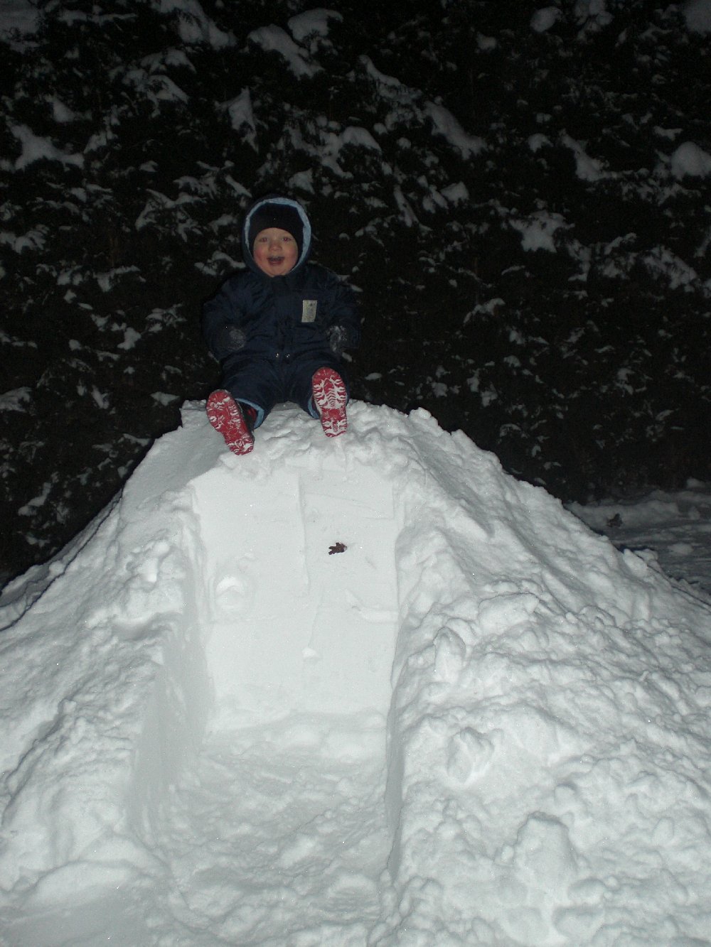 So, hier wie versprochen die Schneefotos mit selbstgebauter Rutsche im Garten :D