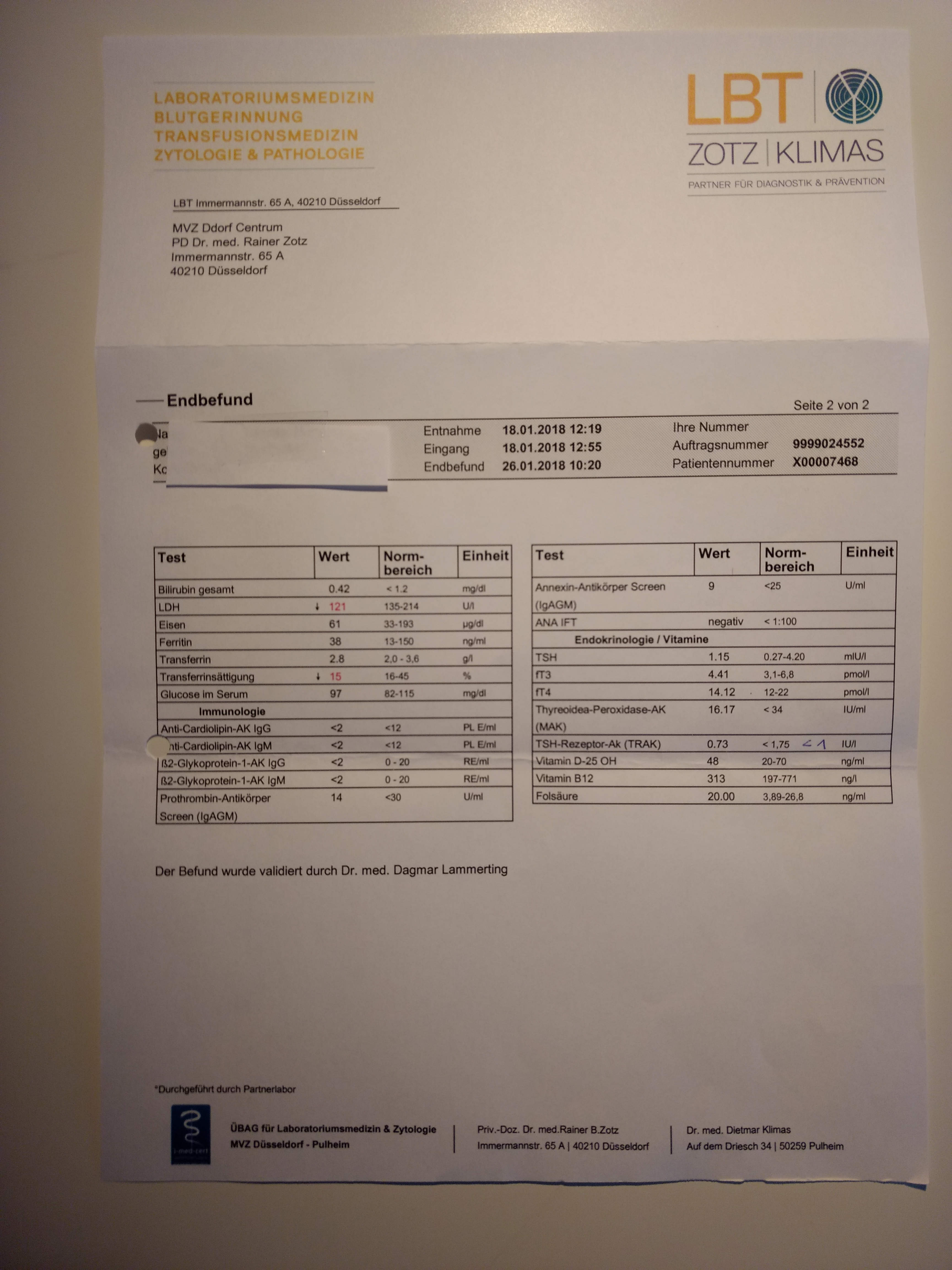 02/2018 2. Kryo - schon wieder positiv, aber biochemische SS...trotz Heparin, ASS, Cortison und Omegaven