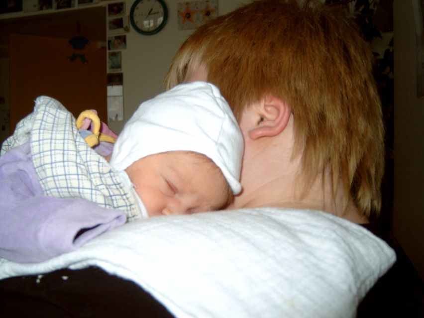 sie hat wohl sehr viel fruchtwasser geschluckt und so hat sie immer noch ein schnaufen in der nase gehabt. dann kam eine nette schwester und hat sich ein bisschen zu uns gesellt. wenn wir fragen hätten oder uns doch unbeholfen vorkämen könnten wir uns jederzeit melden und dann musste sina auch schon einen hieper wasser speien, wie aus einem reflex heraus habe ich sie gleich auf den bach gedreht und habe sie alles ausspucken lassen, da war der schwester schon klar, dass sina und ich freunde fürs leben werden.