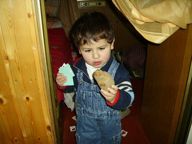 Ich könnte Paul am Nagel hängen anhänglich wie ein Affe er ist wieder mal Erkältet bzw seine Bronchien Pfeifen wieder ,er bleib ja nichtmals umbediengt beim Papa fast nur Mama :roll: jetzt grad ist er beschewtigt er Würfelt gerne er weiss genau wie eine 4aussieht und eine eins wenn er die Würfelt ruft er wie ein Fän