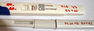 Im Gegensatz zu meinen früheren leicht positiven Tests war dieser eindeutig positiv. Dazu muss man sagen, dass dies ein Frühtest war, der eigentlich schon ab 25 anzeigen sollte. Immerhin hatte ich ja schon fast 50 und trotzdem war die Linie nicht superfett, aber deutlich sichtbar.