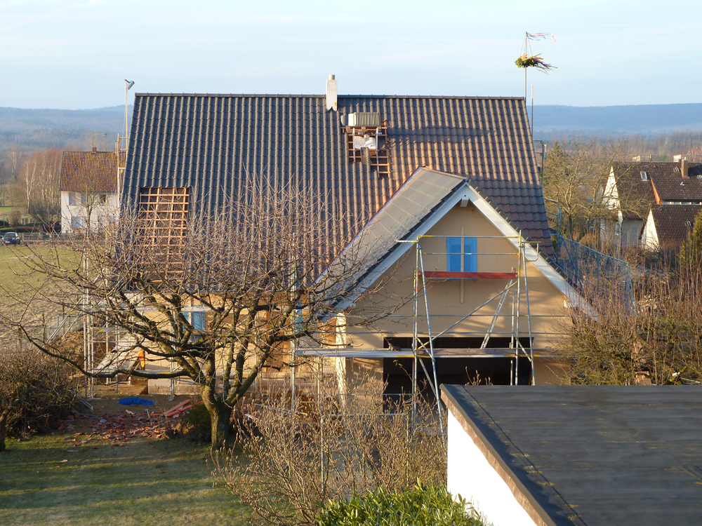 Me: zum fertig gedeckten Dach fehlten am Ende etwa 600 Ziegel