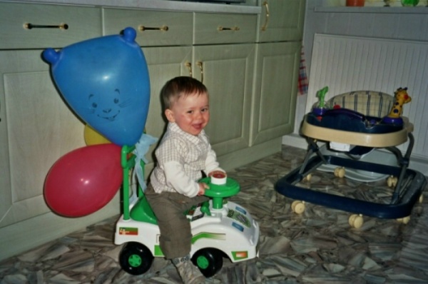 Das Rutscheauto war auch nur zum Fotografieren in Sitzbenutzung, jetzt wird es nur durch die Wohnung geschoben und auseinander gebaut