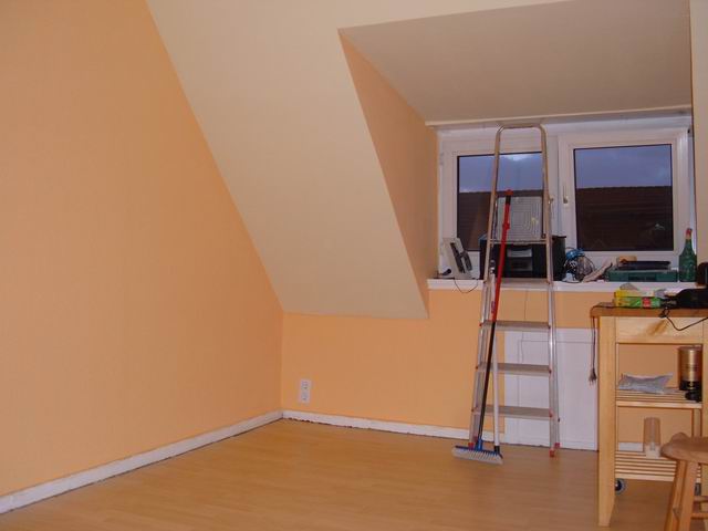 Farben sind wirklich sehr schön geworden. Bei dem knalligen Orange hab ich mich ja durchgesetzt. Leider kann man die Deckenfarbe nicht so richtig auf den Bildern erkennen. Ist ja ein gelb - Ton, der ein bisschen grünlich aussieht. Ist auch an den Schrägen.