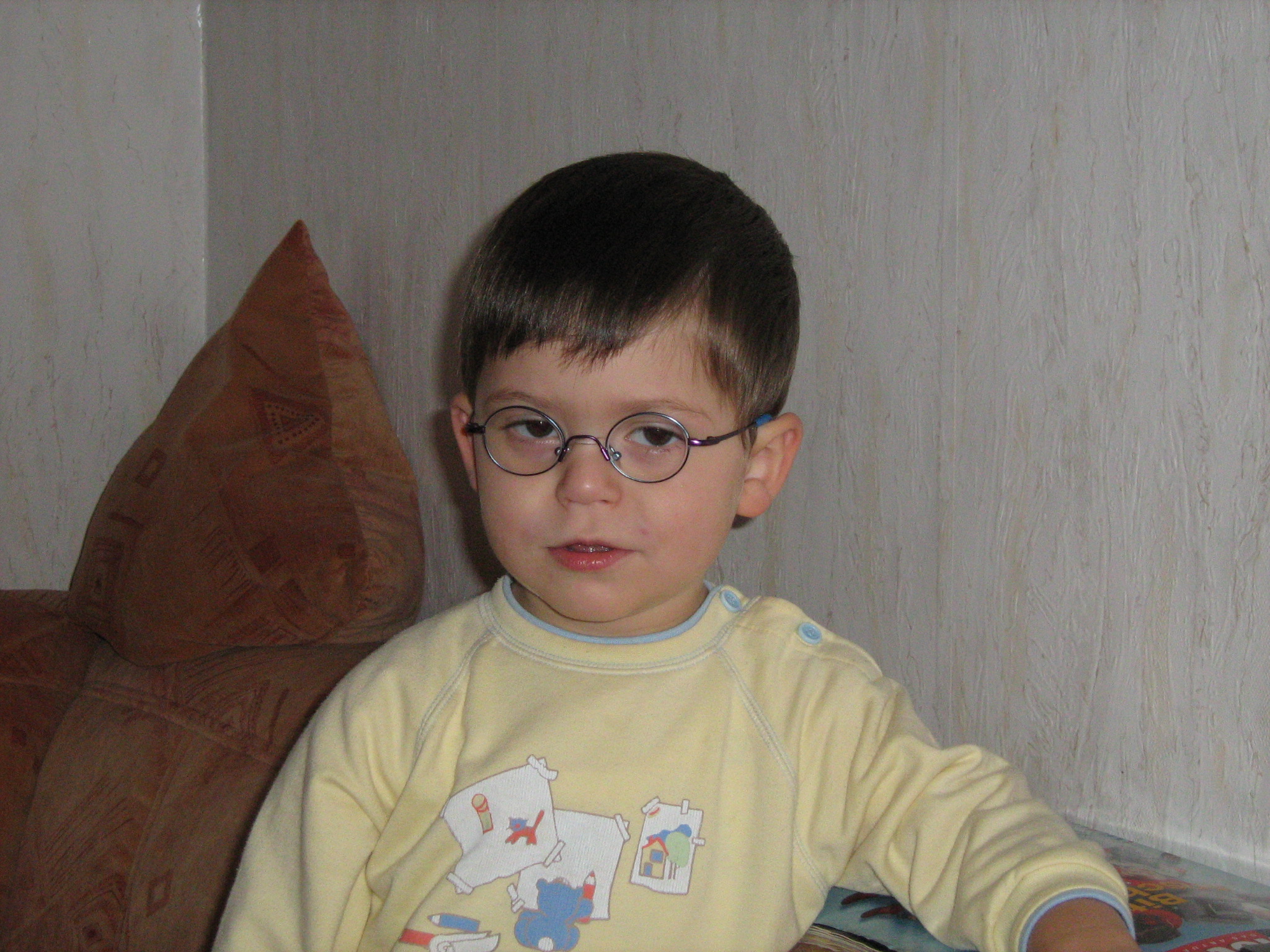 mit seiner Brille reinsetzen, die er heut bekommen hat. Er sieht damit schon so groß aus