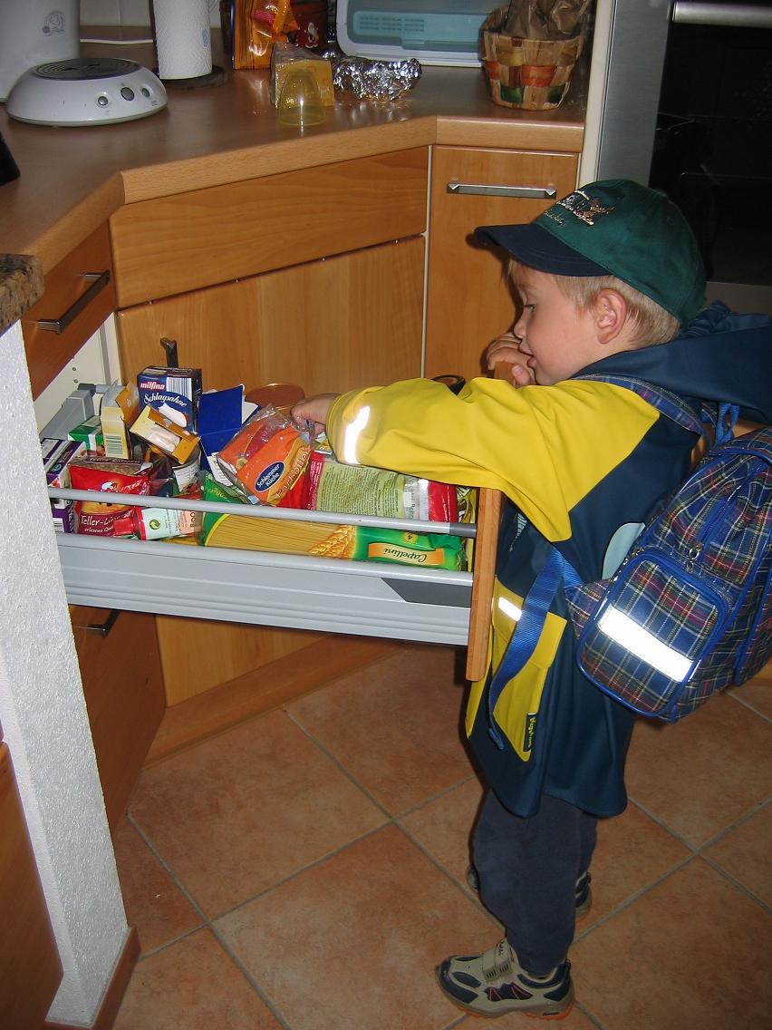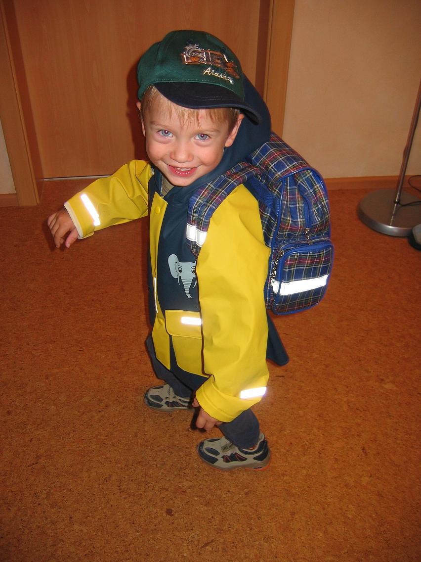 ...das mit dem Gassigehen war echt witzig! Weil es regnete brauchte er seine Regenjacke, dann unbedingt noch sämtliche kleinen Autos in den Rucksack (der war echt schwer