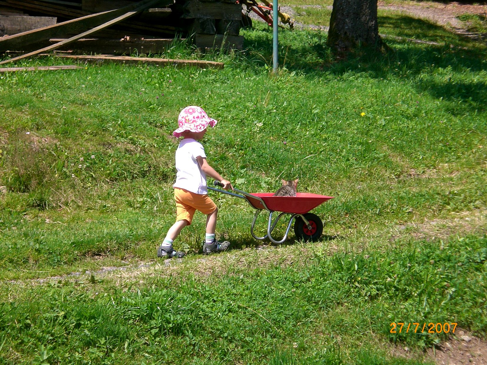 Mit JOnathan auf dem Bobbycar sieht man richtig, wie zierlich und klein sie ist. Bei Julia auf dem Schoß fällt es noch nicht mal auf. Da habe ich echt ein kleines "Böllchen" zuhause.