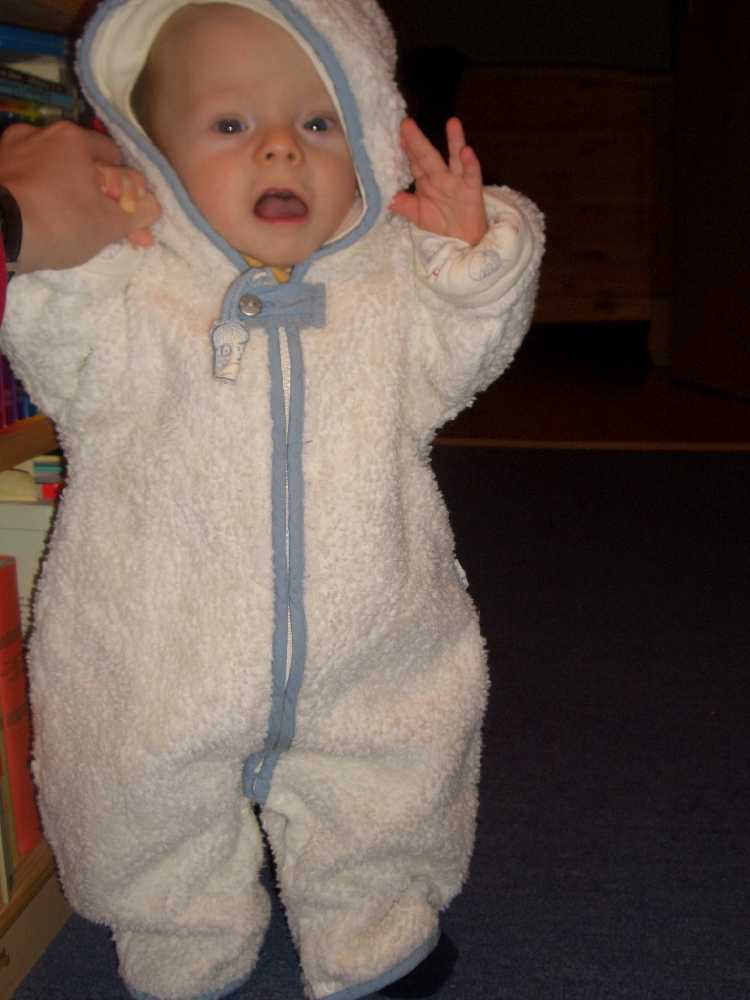 Mensch, Jannik macht sich aber gut. Das hört sich schon so super mobil an und kräftig. Ups, er scheint ja auc hschon größer als Felix zu sein, im Moment paßt er noch sehr gut in eine 56.