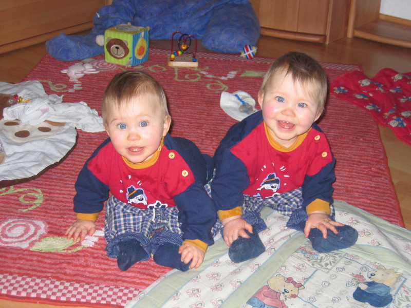 Dieses Jahr werden wir Heilig Abend bei uns zuhause feiern, die Omas und Geschwister kommen her und ich werde es mir total einfach machen und nach Kaffee+Kuchen nur noch die obligatorischen Saitenwürstle mit Kartoffelsalat anbieten :o dafür dürfen wir uns dann an den beiden Feiertagen bei den Müttern durchfuttern :dance: Geschenke gibts für die Großen keine oder nur vielleicht ein Kerzchen oder so was, dafür werden die Knospen reichlich beschenkt :nikosmiley: ,ja zum Thema Knospen (werde nachher vielleicht mal einpaar Bildchen ranhängen)die machen sich auch prima...es kommt jetzt immermal wieder vor, daß sie ihr Ärschle in den Sitz hoch bekommen und richtige Krabbelversuche starten, Julia kommt sogar manchmal ohne Hilfe in die Sitzposition und Zahn Nr. 7 ist durch, und 8.ist im anmarsch...Unsere Nächte sind derzeit desshalb auch nicht die Besten :( (sagt eine verwöhnte Mutter, der ihr schaf doch sooo heilig ist :wink: )