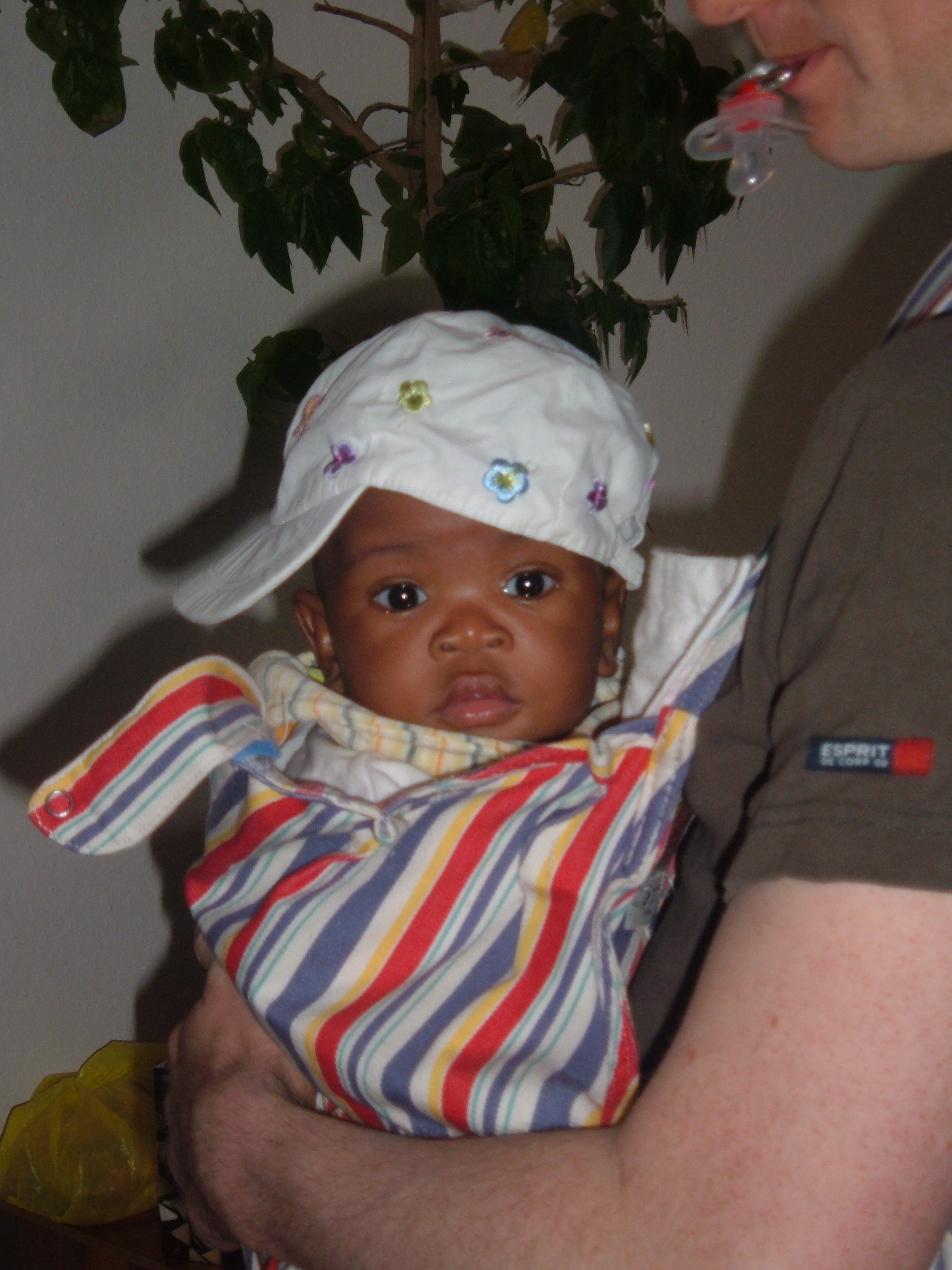 Timo macht sich echt gut als hausmann. scheint ja schon gut zu klappen mit füttern und telefonieren. aber Karabo lässt sich schon ablenken und guckt zum fotoapparat, nicht wahr?!