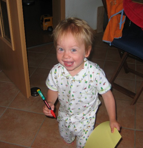So bei uns weniger gute News: Linus fiebert schon wieder hoch. Seit gestern abend 39,7 und so richtig runter geht das Fieber selbst mit Nurofen Saft nicht :( Er quengelt und sabbert und stopft die Finger rein...ob´s wohl die Zähne sind? Hab ja am Montag Termin zum Impfen, aber wenn´s bis morgen nicht besser ist geh ich wohl schon morgen.