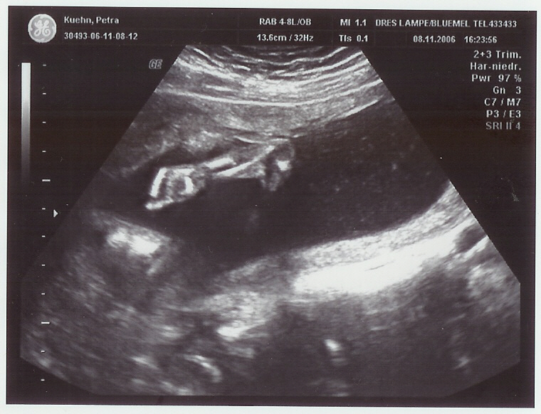 Das schlagende Herzchen wurde ganz genau untersucht. Die Ärztin hat uns auch ein 3D-Bildchen gezeigt und ausgedruckt.