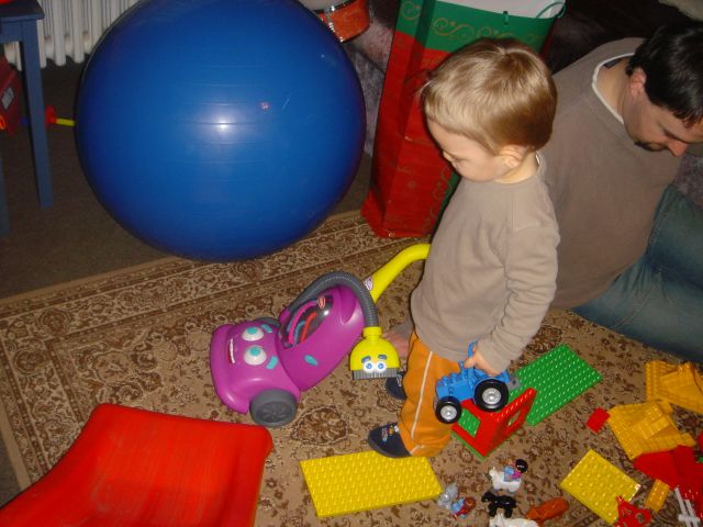 Und der Renner unter den Geschenken war und ist der Staubsauger und der Duplo Bauernhof, da vor allem halt der Traktor und die Tiere.