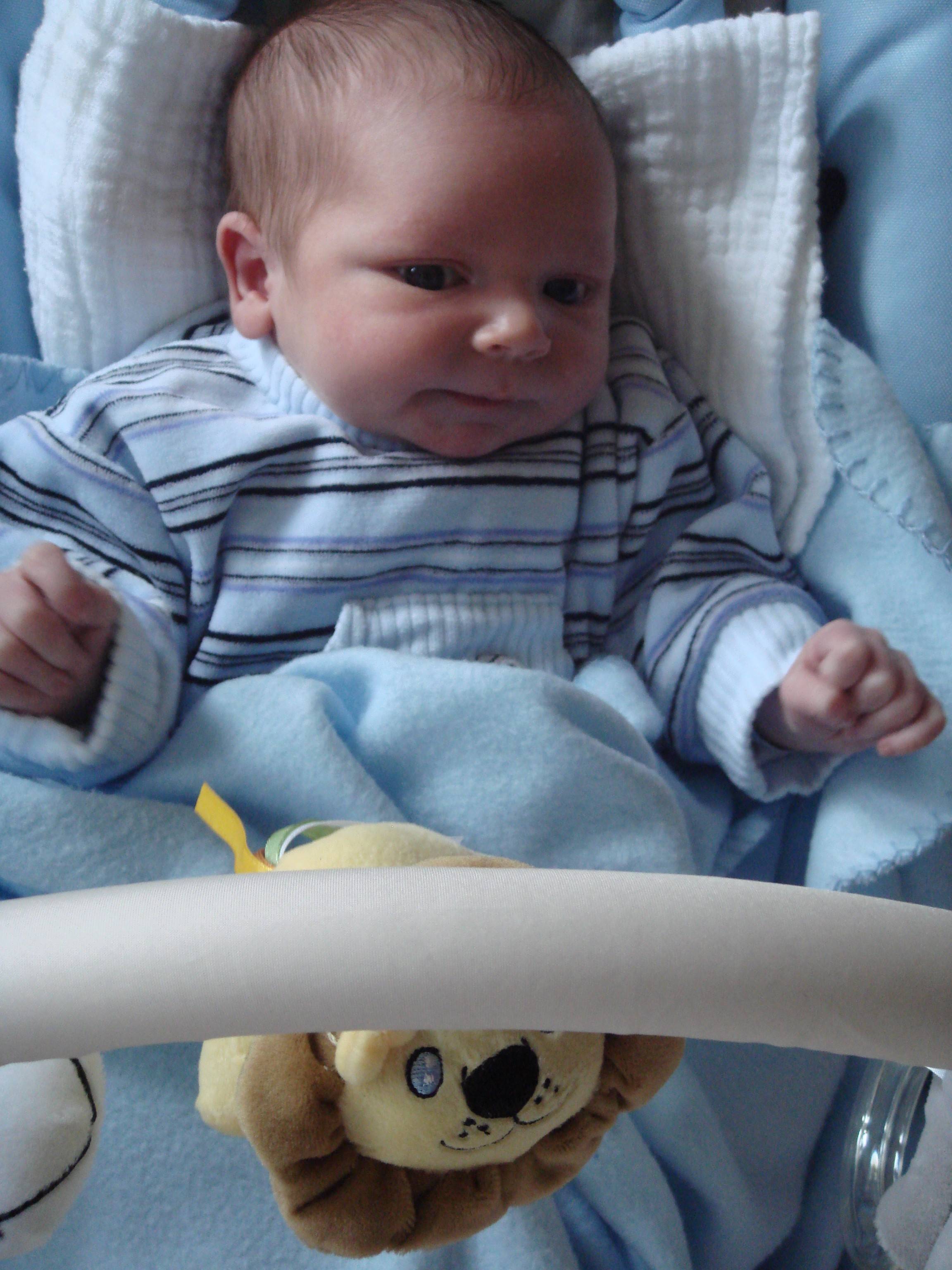 Hallo kleiner Malte du bist ja süß und so ein zufriedenes Gesicht machst du dir scheint es richtig gut zu gehen. Nochmal herzlich willkommen auf der Welt!!!!