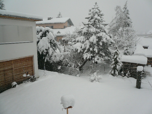 mädels - der winter ist definitiv da - wir haben hier in dornbirn gute 40 cm schnee :o hab grad im büro angerufen, dass ich zuhause bleiben werde... hab am dienstag nachmittag ja sowieso immer frei - und im moment ist noch nicht absehbar, bis wann ich mit dem auto überhaupt bis ins büro komme :grübel: unsere 60m lange private Hauszufahrt ist inzwischen zwar soweit geräumt, dass wir mit dem auto rauskommen, aber auf der straße vorne war noch nicht mal der schneepflug... wir haben echt tiefsten winter :ohnmacht: na ja - ich genieß jetzt einfach mal den freien vormittag - hab grad in unserem ofen feuer gemacht und gönn mir ein gutes tässchen kaffee :-) schaut richtig idyllisch aus draussen - alles ist tief verschneit... versuch mal ein foto hier rein zu stellen :-)