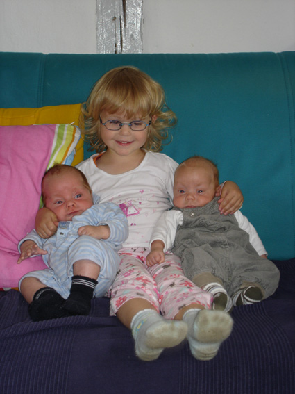 Ich hänge endlich mal ein Foto von unseren drei Süssen an. Lennis und Lucca sind schon ganz schön gross geworden (finde ich, ich weiss, andere Kinder kommen schon so zur Welt