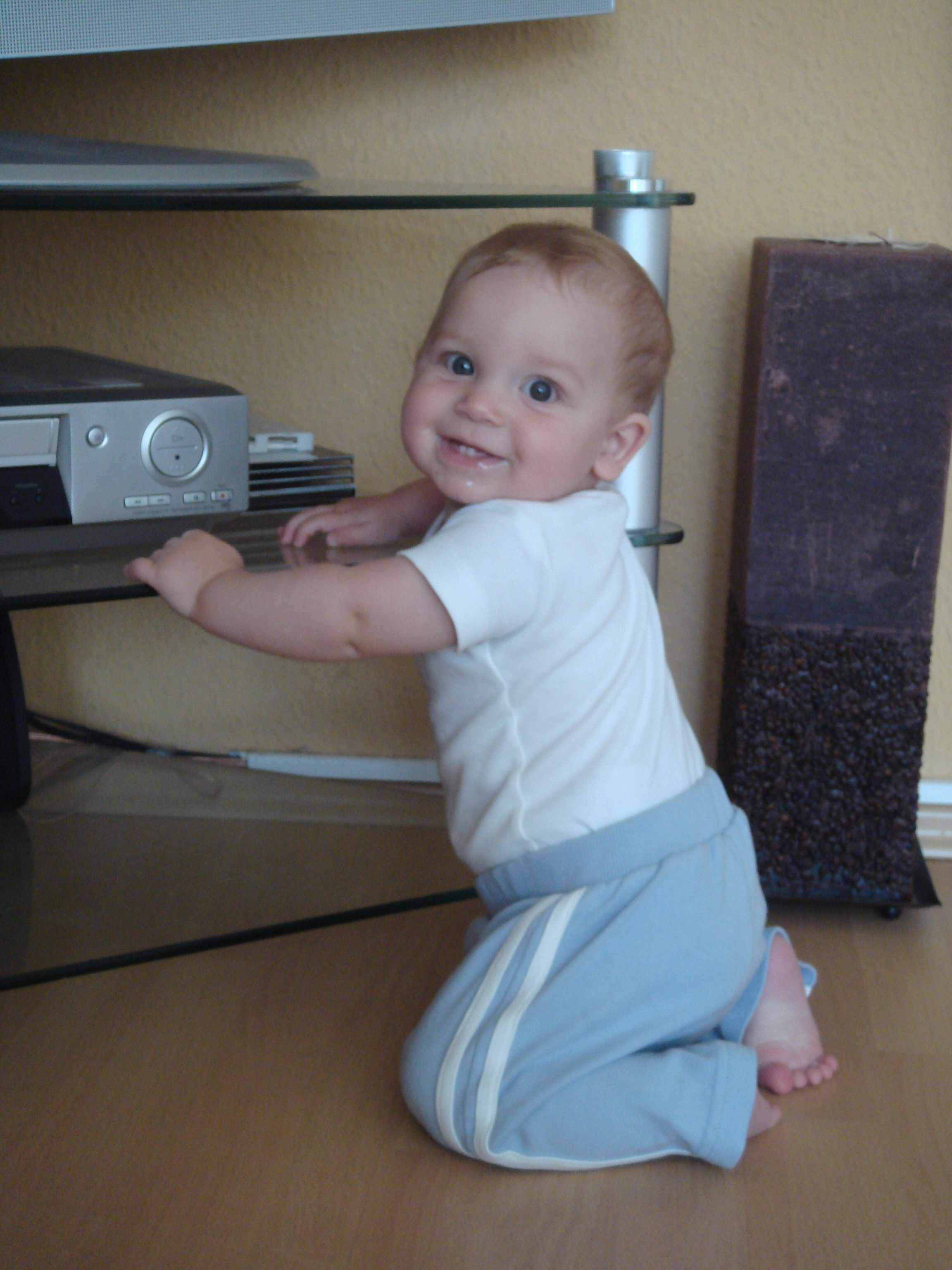 Was soll ich sagen,der kleine Mann hält mich in Schach,aber gaaanz lieb....lag letztens im Flur neben der Bodenvase ,die war natürlich umgekippt,weil er sich daran hochziehen wollte....
