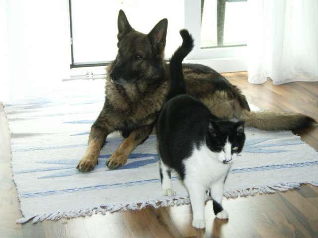 Wir haben auch einen deutschen Schäferhund, 4 Katzen, 2 Wellensittiche und ein paar Fische