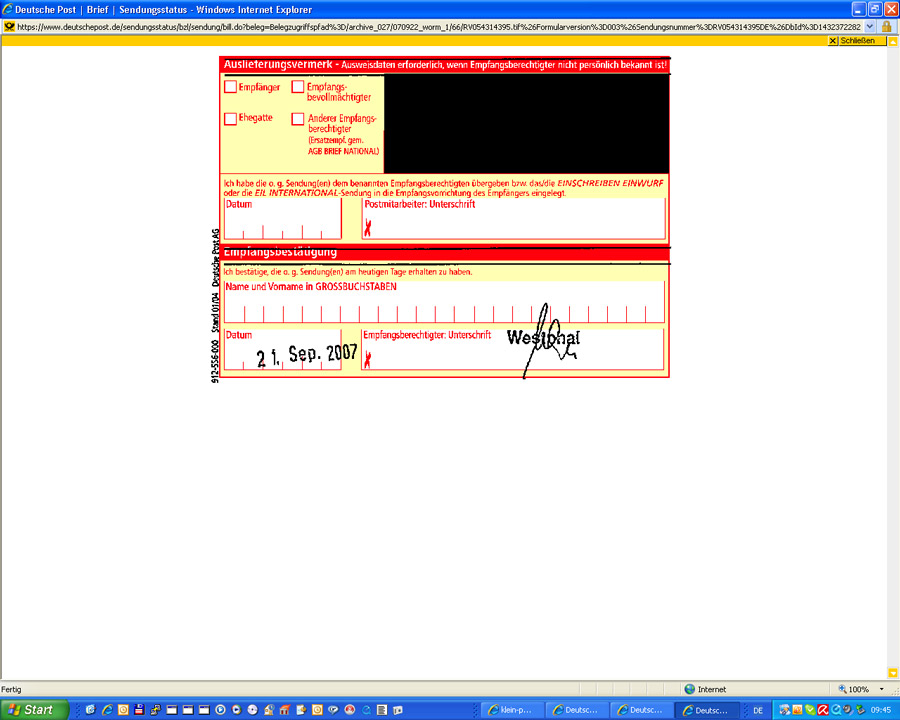 Unser Schreiben vom 10.12.2006 sowie die Erinnerungen vom 10.06.2007 und vom 18.09.2007 sind bisher unbeantwortet geblieben. Ich nehme an, Gaby hätte sich schon gemeldet, wenn der Verein Post vom Ministerium bekommen hätte?