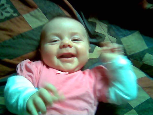 ja...manchmal lacht sie sogar richtig. Das erste mal im Schlaf - das war so süß.