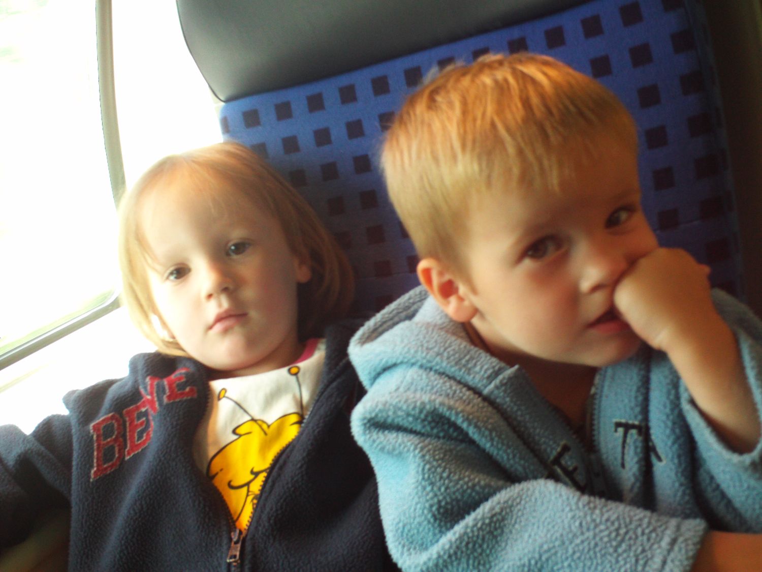 rückfahrt vom bodensee übervoller zug und auf jedem bein von mir ein schlafender zwilli und gregor im hintergrund