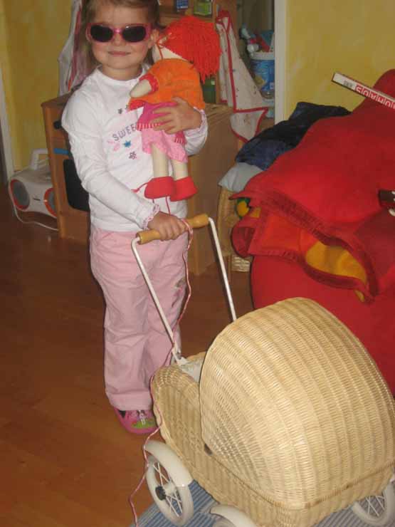 Wir haben gestern als Familie verbracht, nachdem wir in der Kirche das Krippenspiel gesehen haben war lena schon aufgregt ob wohl das Christkind schon da war und tatsächlich ,welch Überraschung die Geschenke lagen unter dem Baum , heute gab es dann nochmals was, da ja das Christkind auch bei O&O ein Geschenk hinterlassen hatte. Ihre neue Puppe wurde auch gleich kräftig bespielt und heute mit dem Fahrrad ausgefahren, leider endete der Ausflug mit einem kleinen Unfall, lena und ich machten Wettrennen bzw. fharen mit dem Resultat dass sie mir in die Haken gefahren ist und wir beide der Länge nach auf dem Boder (natrürlich Asphalt) wieder gefunden haben. Lena hat sich zum Glück nix gemacht und ich sehe jetzt aus wie nach einem Boxkampf (oder wie wenn ich einen bösen Ehemann hätte