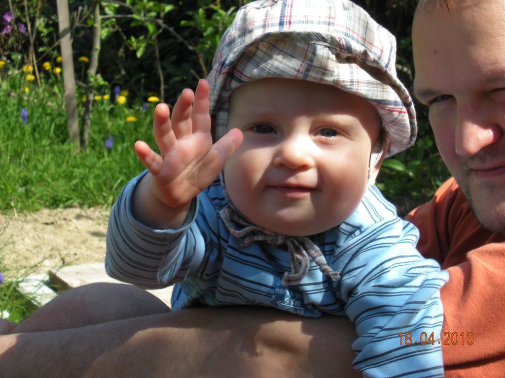 Anbei zwei Fotos von Daniel. Einmal mit Papa beim Sonnenbaden am Sonntag im Garten und einmal hat er sich hinter der Gardine im Wohnzimmer versteckt und auf die Terrasse rausgeschaut :-) Das Spritzen klappt (wieder) gut, Montag früh muss ich dann zum ersten US.