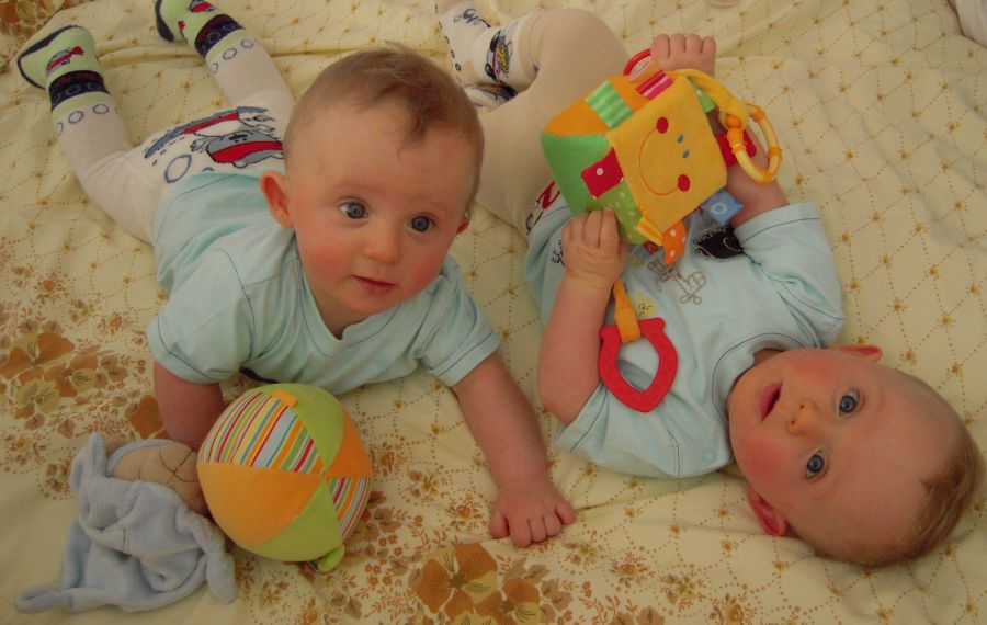 Das klingt ja mal ordentlich. Dann haste ja auch bald zwei so ganz süße Jungs wie meine zwei sind. Im Moment sind die zwei wirklich pflegeleicht. Sie essen gut und schlafen nach dem Mittag immer ihre zwei Stunden. Da sie sich nun auch recht gut durch die Gegend kullern können, ohne zu meckern, kommt Mama auch mal zur Ruhe. Früher haben sie ja immer geschrieen, wenn sie aus der Bauchlage nicht mehr in Rückenlage kamen, aber heute ist das anders. Mittlerweile spielen sie auch miteinander. Manchmal ist es etwas grob, aber im großen und ganzen machen sie das bereits prima.