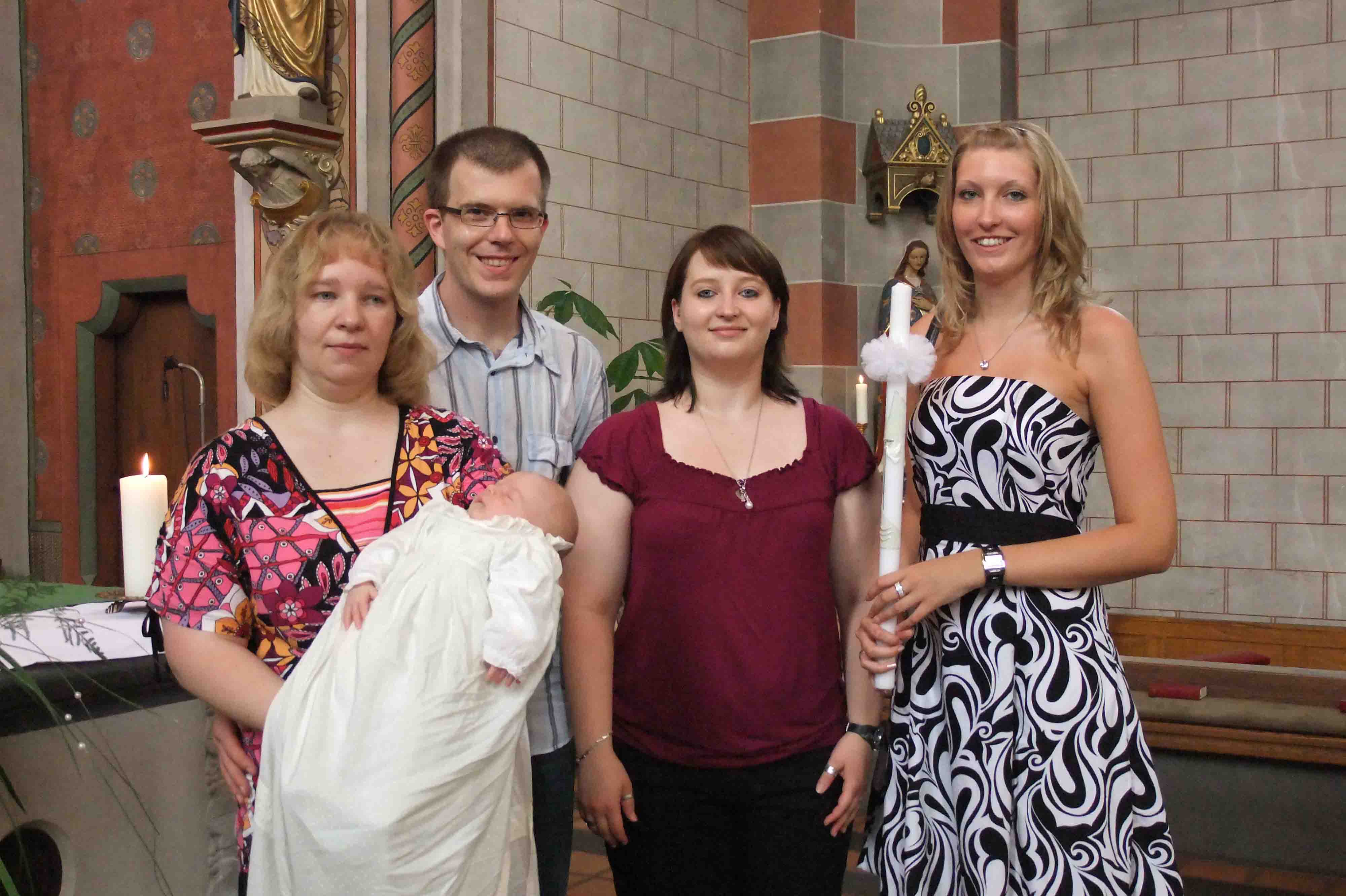 Der Pastor hat recht flott gemacht (waren ja auch 3 Kinder). Er hat uns zur "Taufzeremonie" alle, also auch die Familien und Taufgesellschaften mit an den Altar und das Taufbecken genommen (waren dann also um die 50 Leute um das Becken versammelt) und sogar meine fast 86 Jahre alte Oma ging mit. Naja, sie fing zwar währenddessen wieder an zu zittern (beginnende Parkinson), aber sie hat tapfer durchgehalten. Und danach haben wir uns es bei uns zu Hause gemütlich gemacht. Unser Gummibärchen war megabrav und hat das Ganze, wie 2007 auch sein großer Bruder, verpennt. Noch nicht mal als das Wasser über den Kopf kam hat er sich bemüht die Augen zu öffnen, was will man mehr?