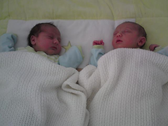 Am Tag der Geburt selber hatte ich noch ziemliche Schmerzen, zwischenzeitlich einen BD-Abfall auf 70/39, am Sonntag ging es mir dann schon um einiges besser, durfte/konnte aufstehen wenn auch noch sehr langsam. Von da an ging es jeden Tag besser. Leider wurden unsere Mäuschen dann im Verlauf der Woche etwas gelb, bei Sarina sanken die Werte aber nach und nach, Michelle musste leider am Donnerstag noch ins Lichtbettchen mit UV-Bestrahlung um die Gelbsucht zu bekämpfen. Sie wurde sehr oft in die Ferse gestochen um den Blutwert zu bestimmen - sie tat mir so leid. Bis heute war es ungewiss ob wir beide Mäuschen nach Hause nehmen dürfen oder ob Michelle noch auf die Neo muss um weiter bestrahlt zu werden. Am Mittag wurde nochmals das Blut getestet und der Wert ist gottseidank gesunken. Allerdings müssen wir nun morgen durch die Hebamme nochmals den Blutwert bestimmen lassen, mein Mann muss dann die Probe in die Uniklinik fahren damit dort nochmals der Wert bestimmt wird. Nun hoffen wir fest dass dieser kontinuierlich weiter sinkt.