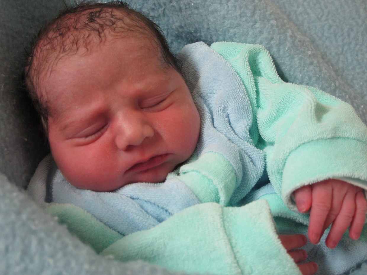 Mein Koffer war ja nun bereits gepackt, habe mich dann angezogen und noch ein Frotteetuch in die Hose gestopft da immer wieder Fruchtwasser rauskam. Habe dann in der Klinik Bescheid gegeben dass wir uns auf den Weg machen - haben uns dann ein Taxi bestellt und waren um 03.49 in der Klinik wo wir bereits erwartet wurden. Wurde dann ans CTG gehängt wo auch schon deutliche Kontraktionen sichtbar waren, der Kaiserschnitt wurde besprochen, anschliessend durften wir das Gebärzimmer beziehen wo ich mich umziehen musste und ich eine Infusion sowie einen Blasenkatheter bekam. Der Narkosearzt kam noch vorbei um uns über die Narkose aufzuklären - in der Zwischenzeit war es ca. 05.30 h und die Wehen wurden immer stärker. Ca. gegen 06.00 h wurde ich in den OP geschoben wo mir die Spinalanästhesie gesetzt wurde - es stellte sich etwas schwierig heraus aber der super nette Narkosearzt hat es dann doch noch geschafft. Gott sei Dank - eine Vollnarkose wäre der Horror für mich gewesen. Als ich dann auf dem OP-Tisch lag kam dann auch mein Mann in den OP - ganz in grün
