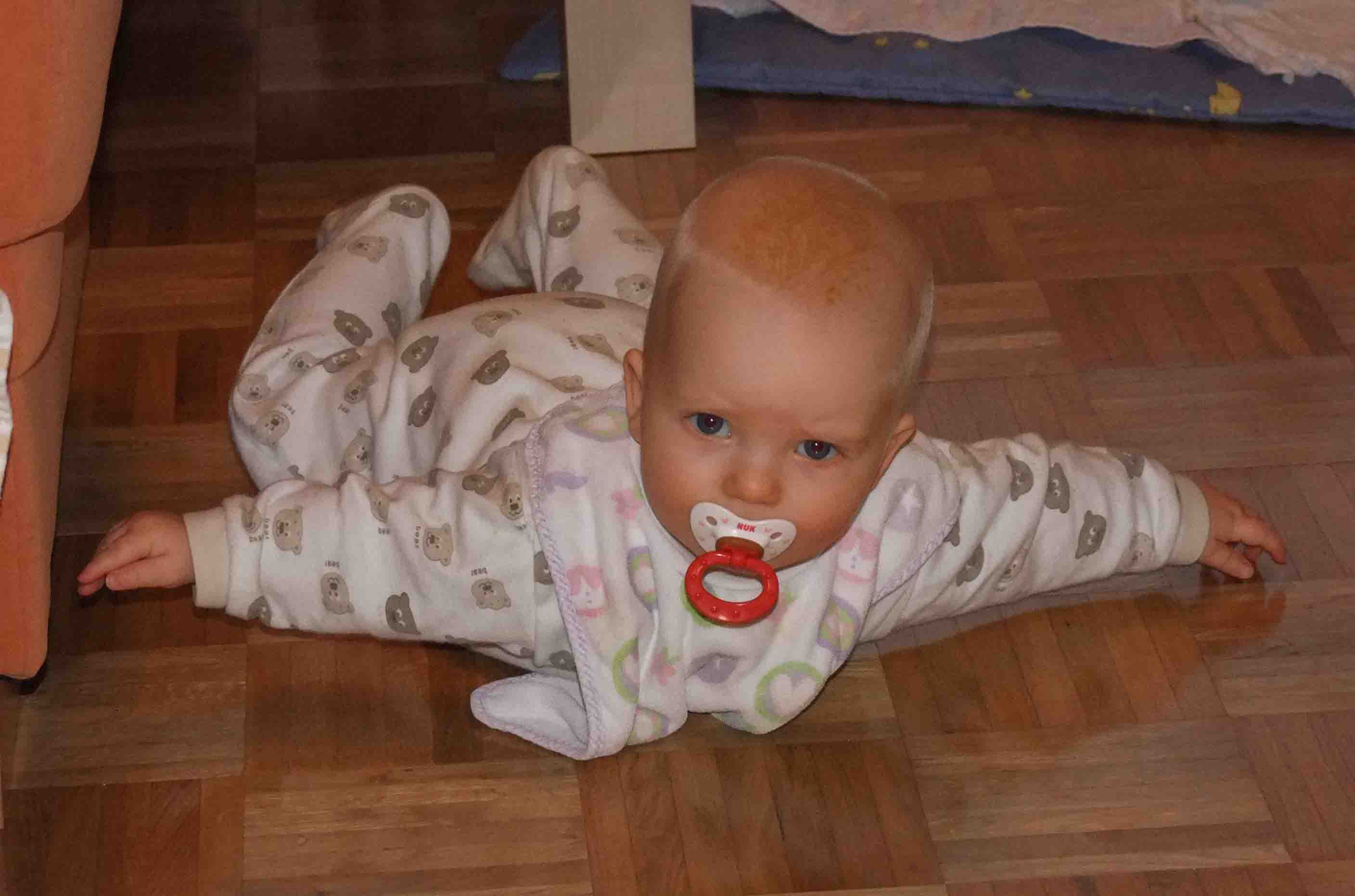 Jetzt gerade hat er zum erst Mal halb im Vierfüßlerstand gestanden! Beine waren schon oben, aber mit den Armen klappt es noch nicht ganz (er hat es dann jetzt zum ersten Mal auf die Ellenbogen geschafft). Ich sitze hier und warte, dass bei der Gyn endlich jemand ans Telefon geht....