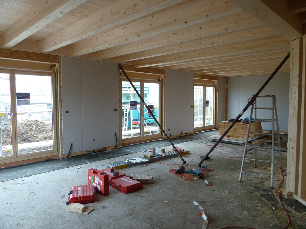 So ging´s los: gefühlt wie mitten in der Nacht, drei Grad unter Null, ein riesen Kran und jede Menge Gerüst um eine Lücke, in die unser Haus soll...
