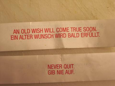 Wenn wir schon über Zeichen Reden: Wir waren 2x beim Japaner dieses Jahr, und beidemal hatte ich Glückkeks: