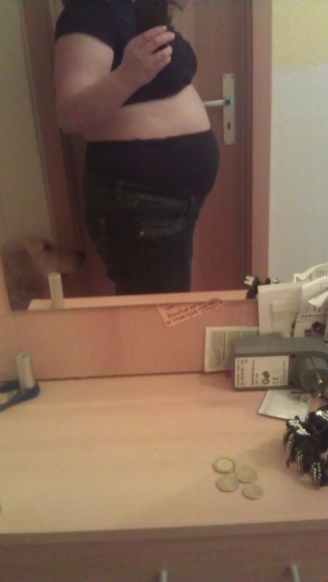 Mokka: Eindeutiger Babybauch..versuch die restlichen Wochen ein wenig zu genießen!