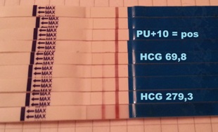 An PU +11/TF +6: Überstimulation beginnt (Bauch wie im 4./5. Monat), Eierstöcke beide bei ca. 8*8 cm, Hämatokrit leicht erhöht, etwas Wasser im Bauch