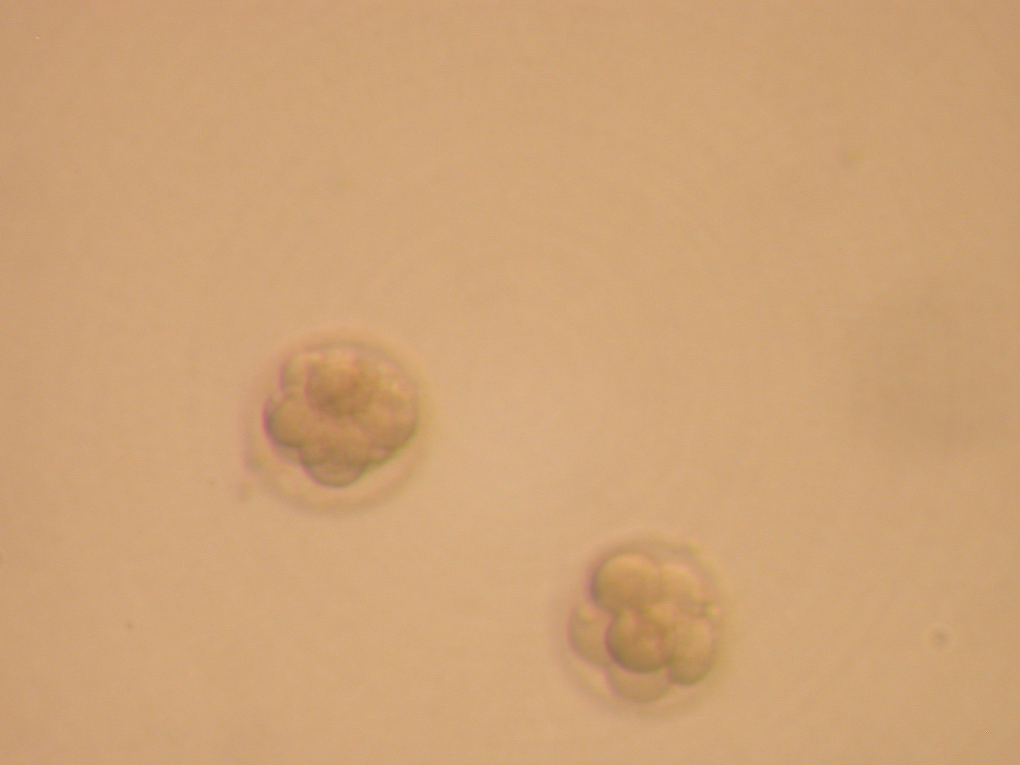 beide Embryonen sind schön gleichmäßig und zeitgerecht entwickelt (sie sehen aus wie 8-Zeller mit sehr geringem Anteil an Fragmenten).