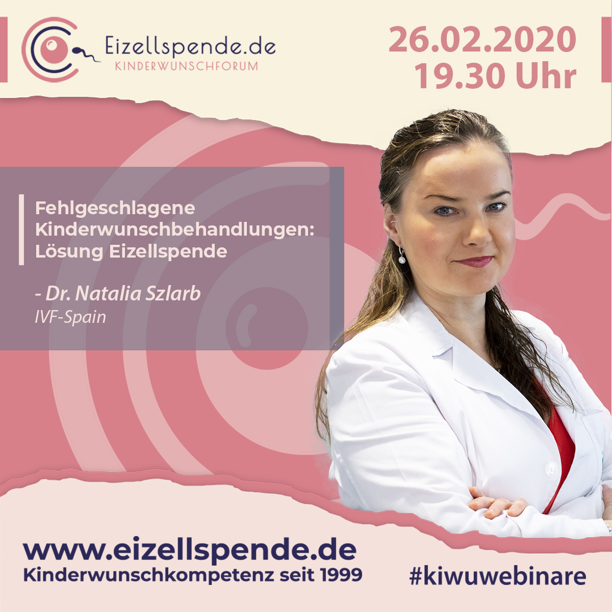 Wir freuen uns, dass wir für das erste Webinar im Jahr 2020 Dr. Natalia Szlarb von der Klinik IVF Spain in Alicante gewinnen konnten. Nach mehreren Stationen im Ausland arbeitet Dr. Szlarb seit 2007 bei IVF Spain. Dort ist sie inzwischen die Med. Leiterin. Sie ist eine sehr erfahrene Ärztin, wenn es um das Thema Eizellspende gibt.